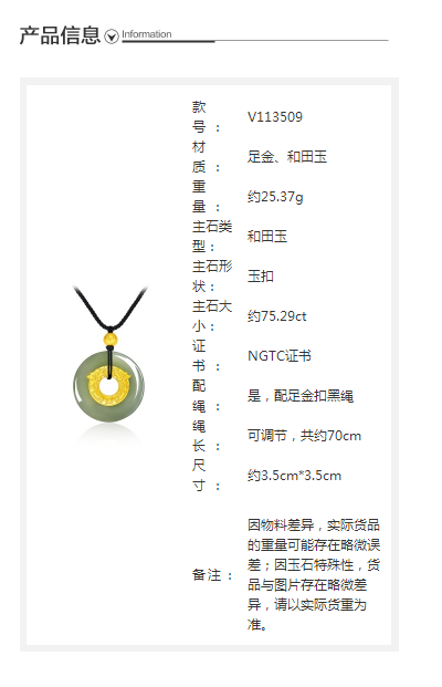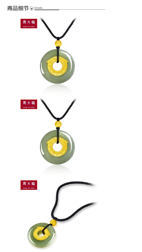 【周大福】国玉传承系列龙凤配足金黄金和田玉吊坠V113509精选
