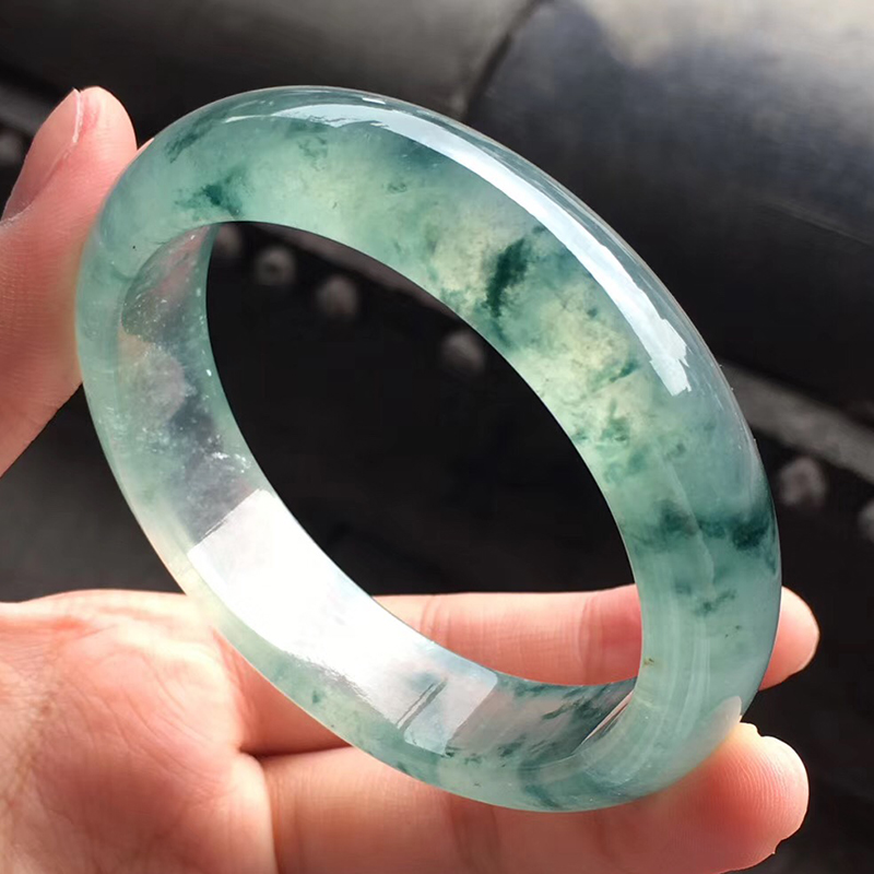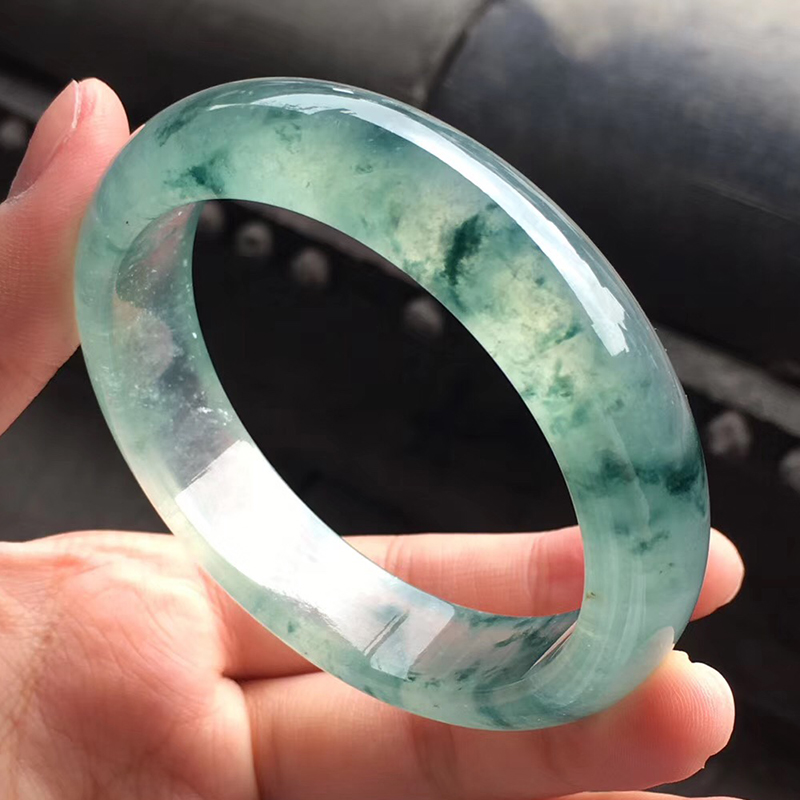 【果敢翡翠】w0819-12果敢翡翠 55.6冰飘花翡翠手镯玉手镯缅甸玉石手镯
