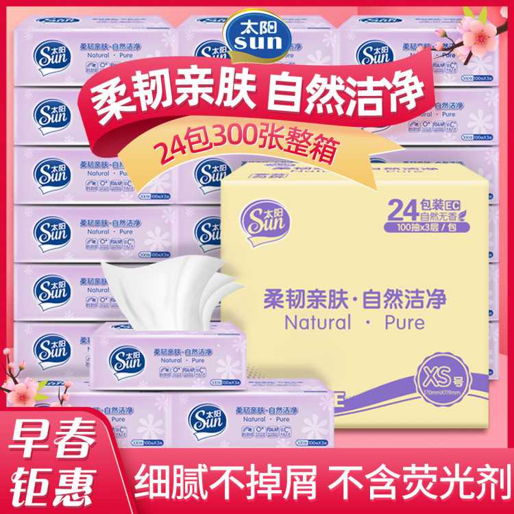 【领券再减20】中顺洁柔太阳24包抽纸家用纸巾餐巾纸实惠擦手纸