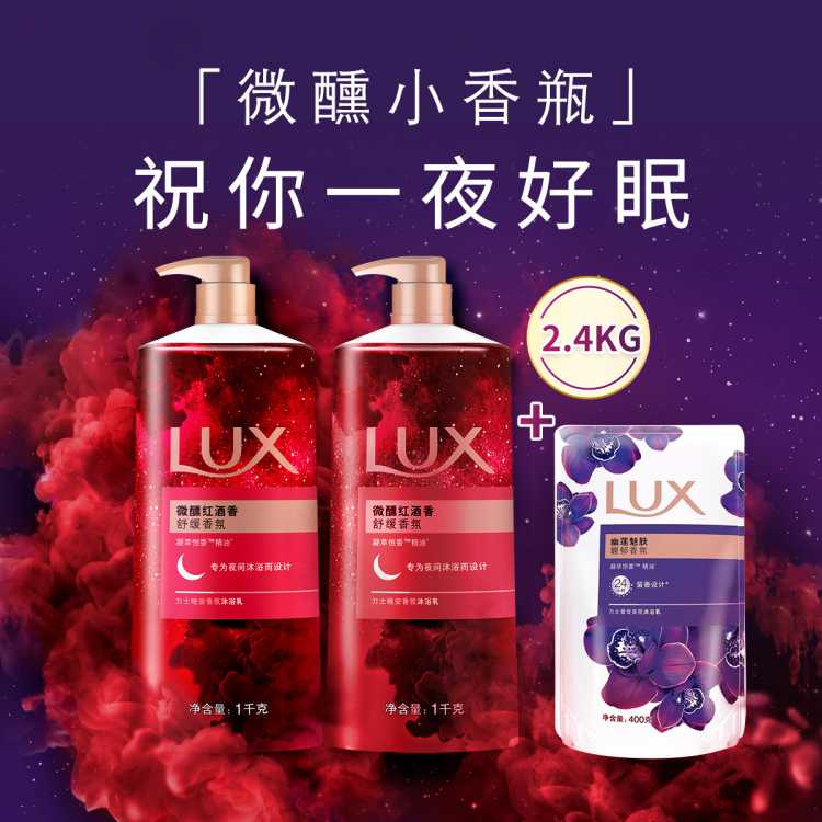 力士晚安香氛沐浴露套装微醺红酒香1000g*2+幽莲魅肤补充装400g